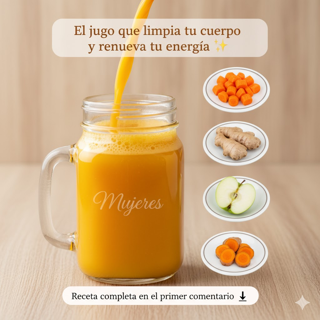 Esta poderosa bebida combina los beneficios de la manzana roja, la zanahoria, el jengibre, la cúrcuma y el limón, creando un remedio natural ideal para limpiar el organismo, fortalecer las defensas y aportar energía. Perfecta para tomar en ayunas y empezar el día lleno de vitalidad.