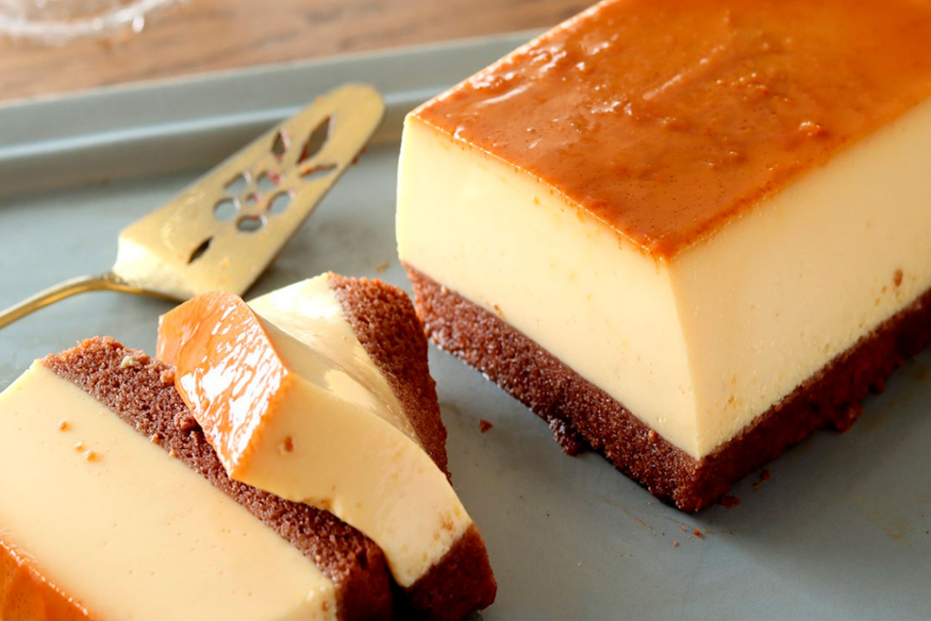 14. Para desmoldar, pasa un cuchillo por los bordes del molde y voltea el bizcoflan sobre un plato grande.