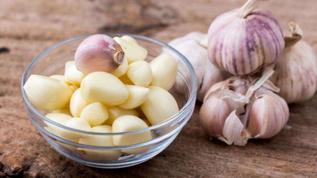 1️⃣ Pela los dientes de ajo y tritúralos hasta formar una pasta.