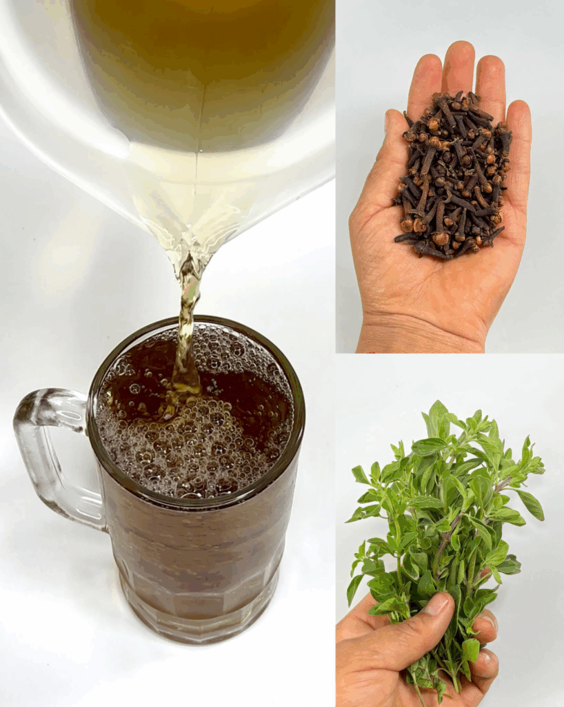 1️⃣ Coloca las hojas de orégano poleo y los clavos de olor en una cacerola