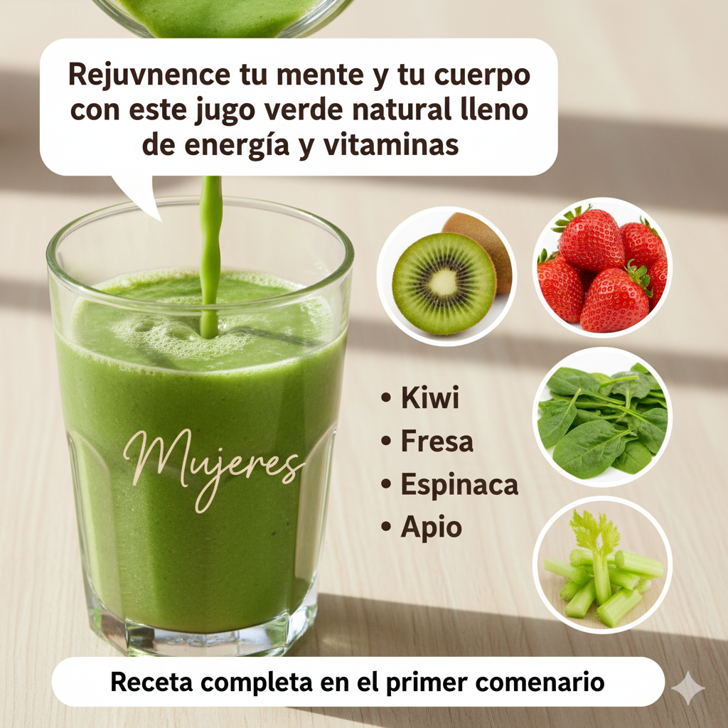 Este licuado es una verdadera joya de la nutrición natural. Gracias a la combinación de fresas, apio, perejil y kiwi, aporta antioxidantes, vitaminas y minerales que protegen las neuronas, mejoran la circulación cerebral y ayudan a prevenir enfermedades como el Alzheimer. Además, contribuye a regular la glucosa, el colesterol y favorece un sueño reparador.