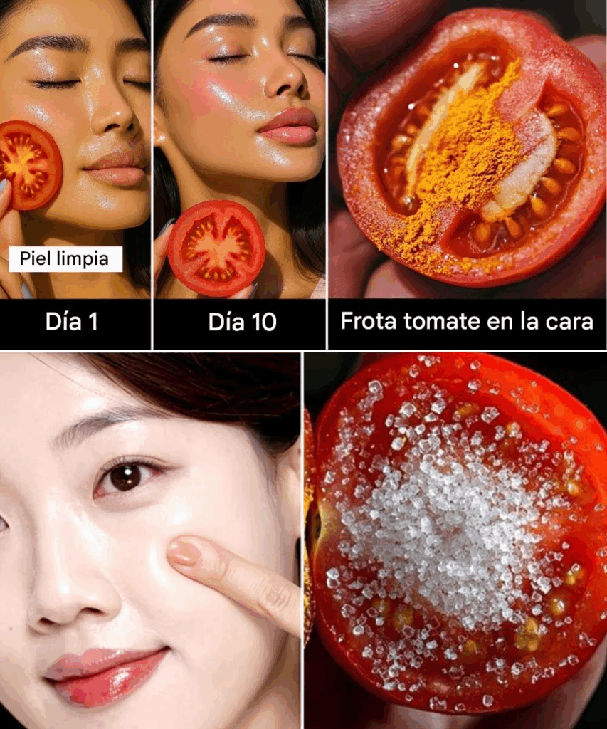 El tomate contiene licopeno, un antioxidante que combate los radicales libres, mejora la firmeza y reduce la aparición de arrugas.